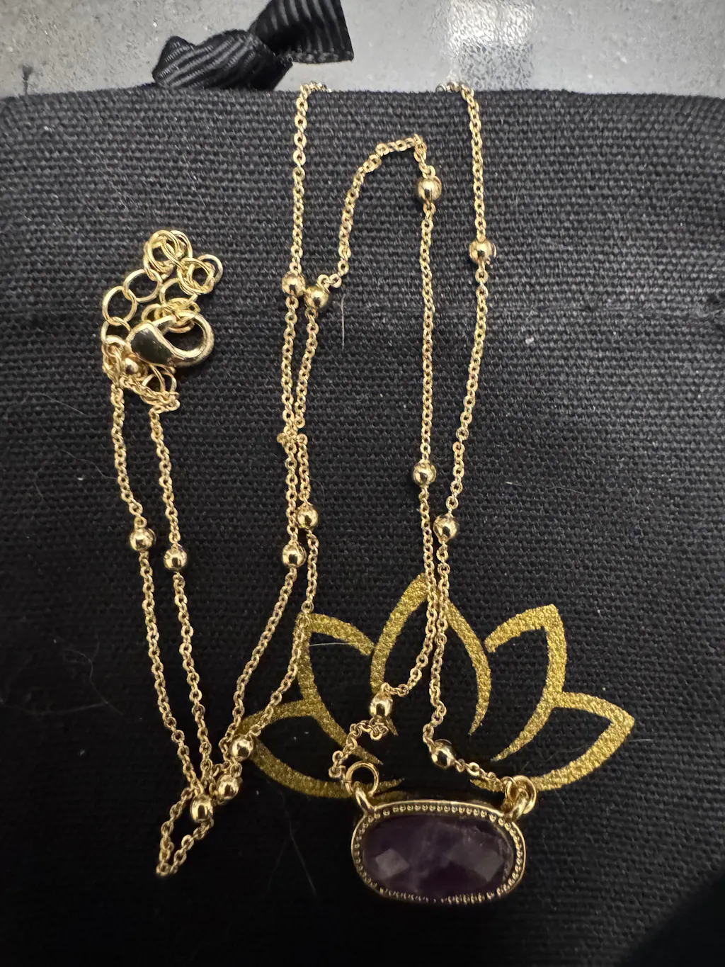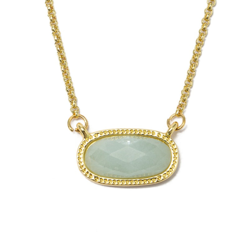 This is a very pretty, dainty necklace. The chain is comfortable with an extension if needed . The stone is bright and noticeable which makes it perfect for layering. I bought one in Aventurine and one Amethyst for my Granddaughter. It has become one of my “go to necklaces “ and is very affordable !! Love it!!